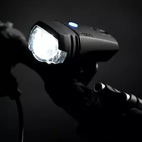 The powerful LED headlight is powered by a long-lasting battery that can be recharged up to 1000 times via USB and ensures up to 13 hours of evening riding fun. The rechargeable front light mounts flexibly to the bicycle handlebar. Thanks to the adjustable silicone strap, the holder for the spotlight can be securely strapped on. The lamp can be removed from the holder with a single pull if you are parking your bike or need to recharge the light. Speaking of charging: After only 3 hours plugged in, the battery is brimming with power again for your next ride.