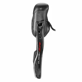The redesigned Super Record Ergopower brake/shift levers reflect Campagnolo’s proven traditions and thoughtful development of cutting-edge technologies. The improved Ultra-Shift™ mechanism impresses with smoother and more precise gear changes even under high load thanks to optimised mechanics, and the long proven Campagnolo Ergopower ergonomics have been revised with great results.