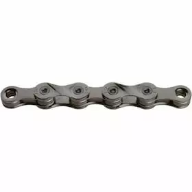 KMC’s grey X9 chain for 9-speed derailleurs stands out for solid running properties and high wear resistance. The all-round chain offers ideal value for money and is suited for all areas of use. The chain’s high durability results from a combination of abrasion-proof steel alloys with high production quality. Together with the X-Bridge Technology, the surface treatment of the outer plates allows for fast and smooth shifting. As the bike chain is not coated with a special corrosion protection, regular chain care is recommended.