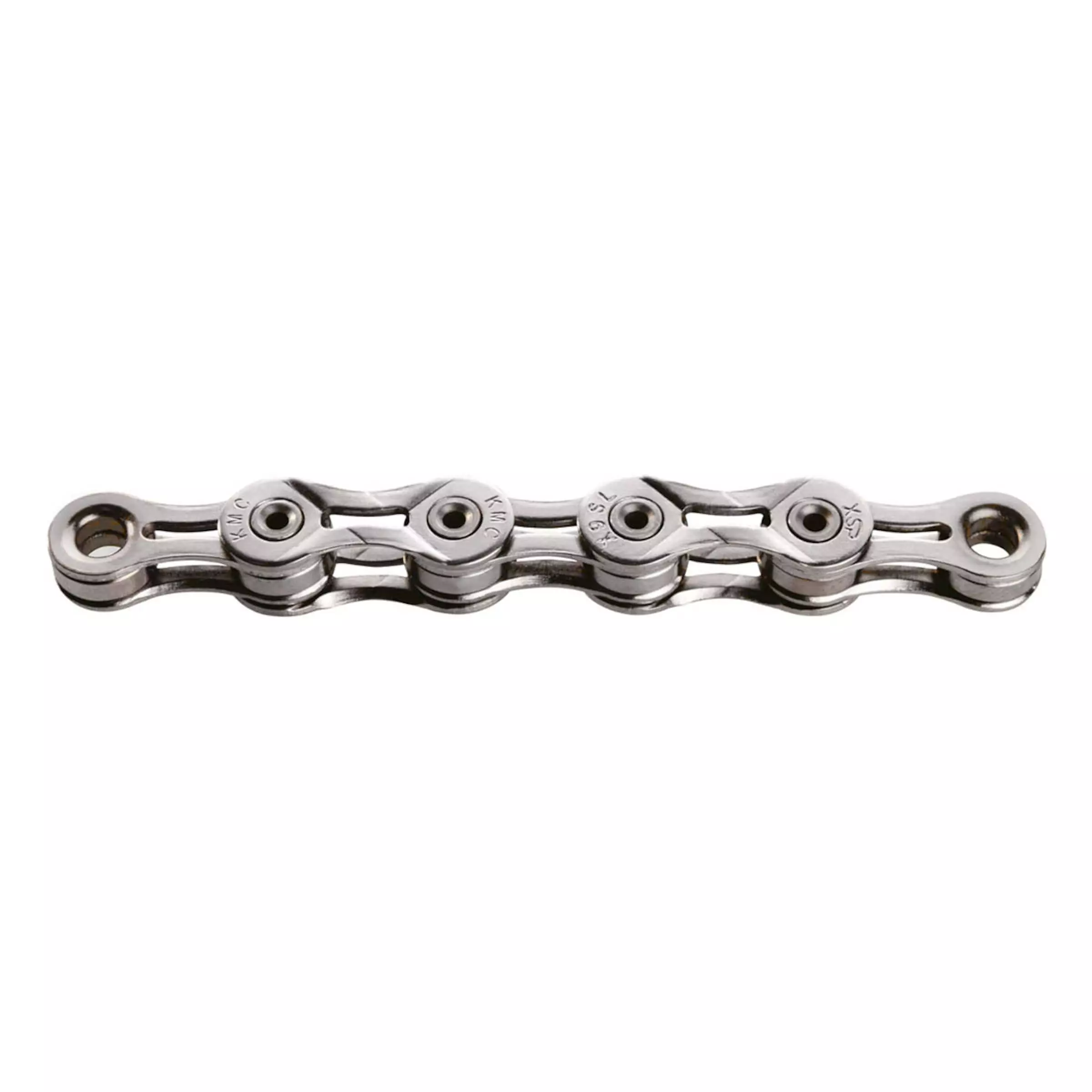 As the KMC X9SL chain is lightweight and uses less material without compromising on durability, it is the perfect choice for all 9 speed systems. The weight savings are thanks to the use of hollow pins that are riveted on the chamfered inner and outer plates to be flexible, yet also extremely tearproof. The chain’s high wear resistance results from a combination of hardened steel alloys and an abrasion-proof nickel coating. It not only protects from corrosion and reduces wear, but also improves shifting performance on and off the road – together with chamfered inner plates and the X-Bridge design.