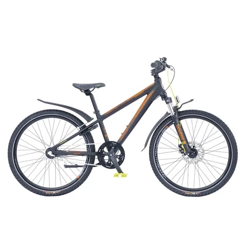 Pyörässä on tehokas levyjarru edessä ja jalkajarru. Pyörä on varusteltu lokasuojilla ja lukolla.